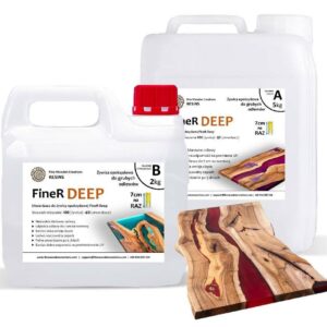 ...“FineR Deep” casting epoxy resin is a high-quality epoxy casting resin for very transparent castings. Great ability to pour large castings, perfect air bubbles release, very smooth curing and crystal clear transparency – it is an excellent resin for casting epoxy river tables and tabletops.