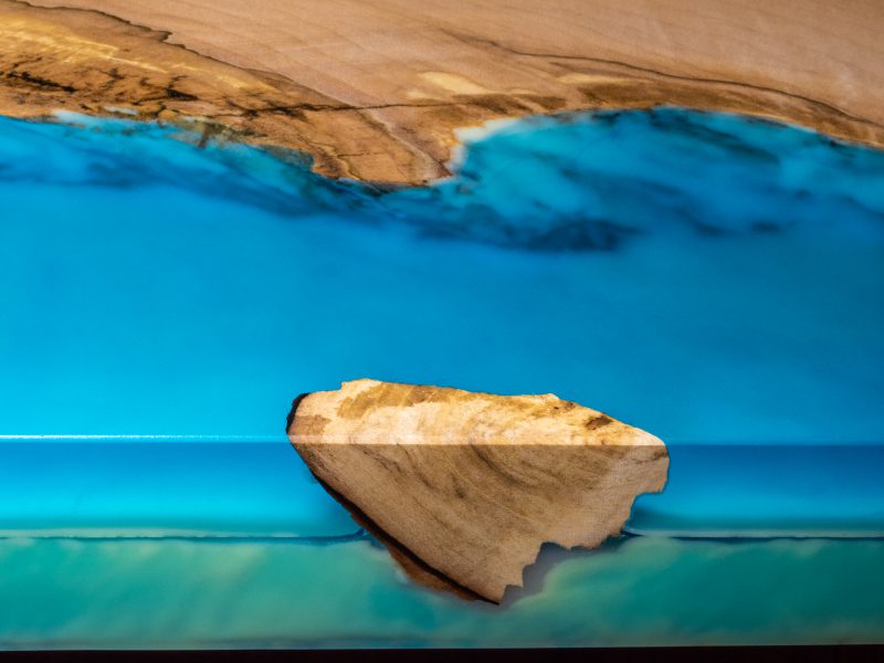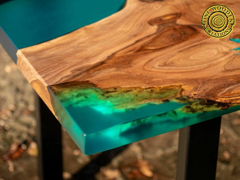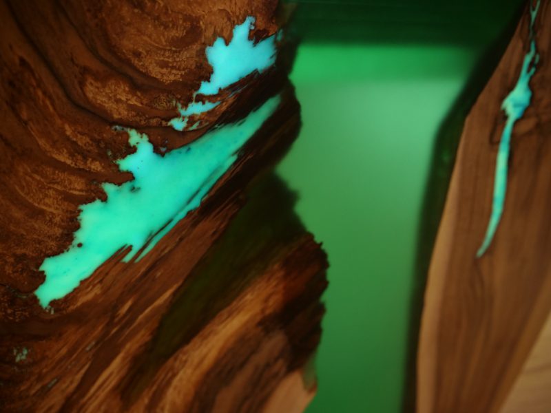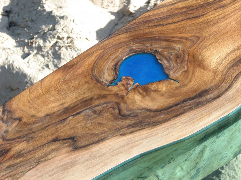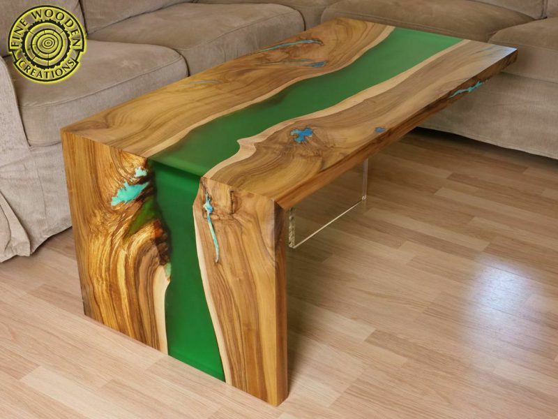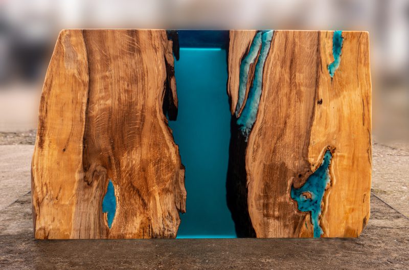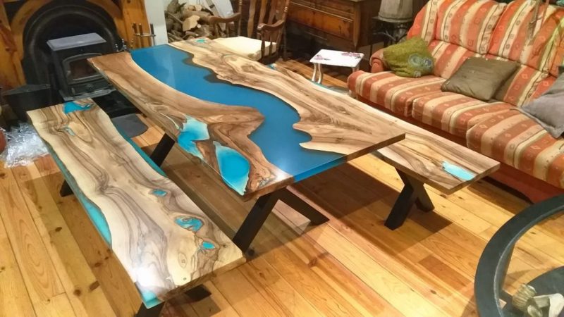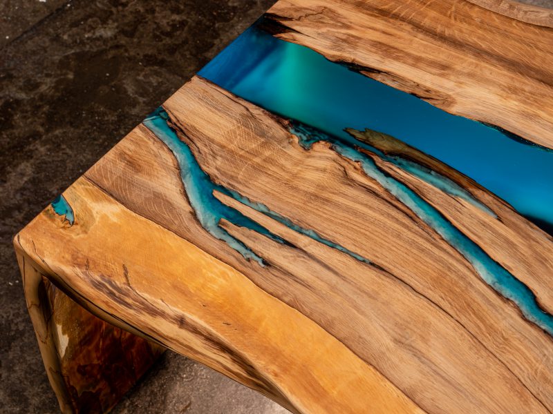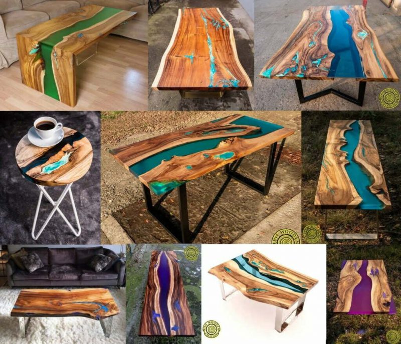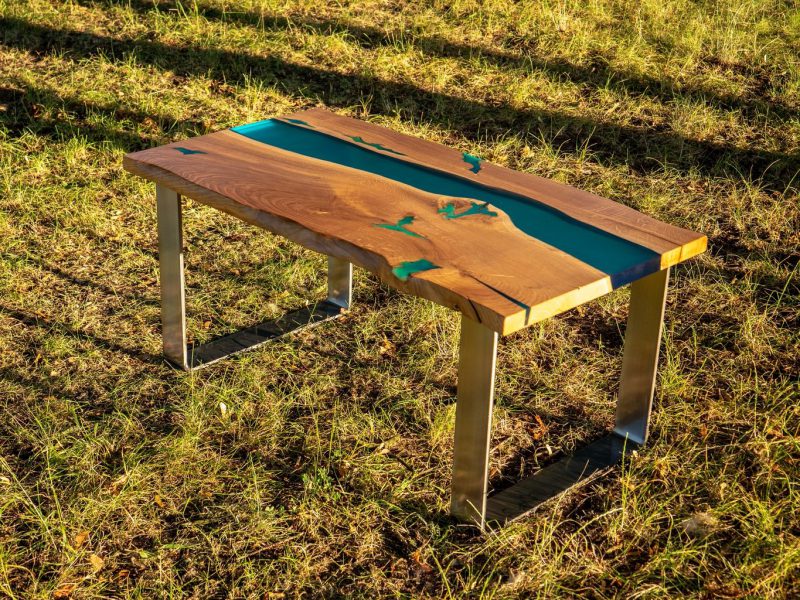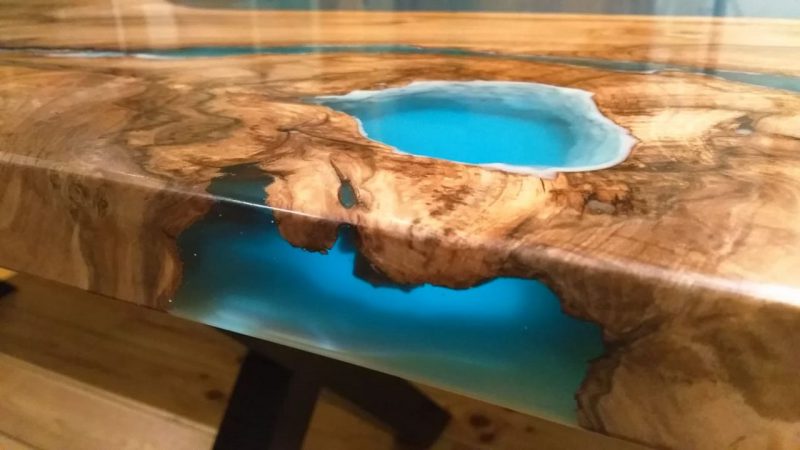 Przykładowe stoły z żywicą epoksydową zabarwioną barwnikami transparentnymi