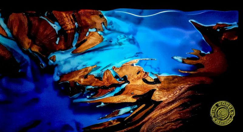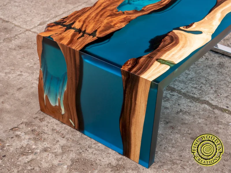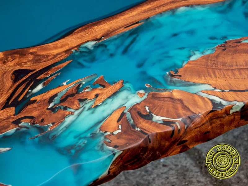 W meblu z egzotycznego drewna suar zastosowano specjalną mieszankę żywicy epoksydowej z turkusowym proszkiem luminescencyjnym, które wypełniają pęknięcia, słoje i otwory w drewnie. Mieszanka ta świeci w ciemności subtelną turkusową barwą przez kilka godzin. Fantastyczny mebel, który sprawi, że Twoje wnętrze będzie niepowtarzalne i zachwycające.