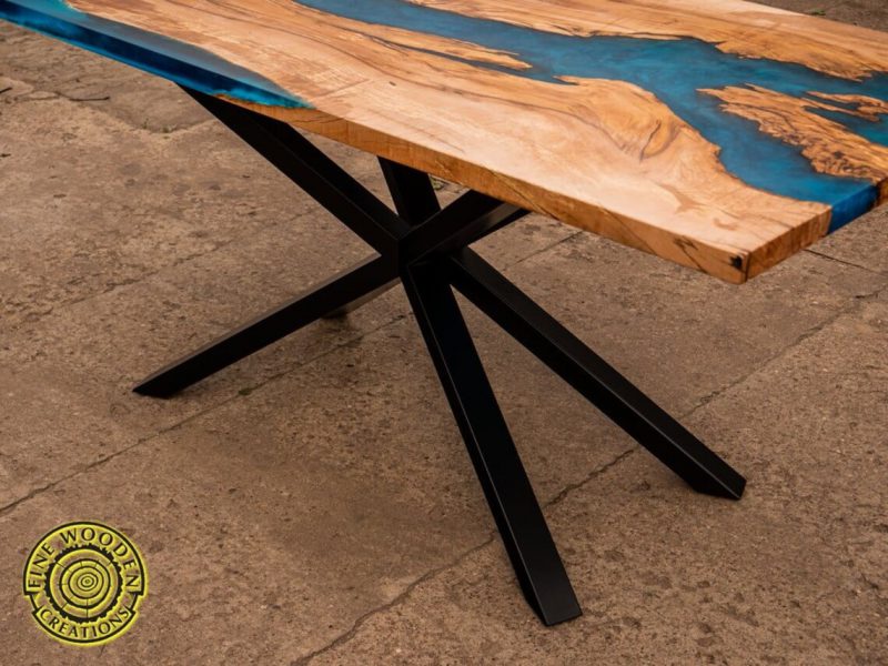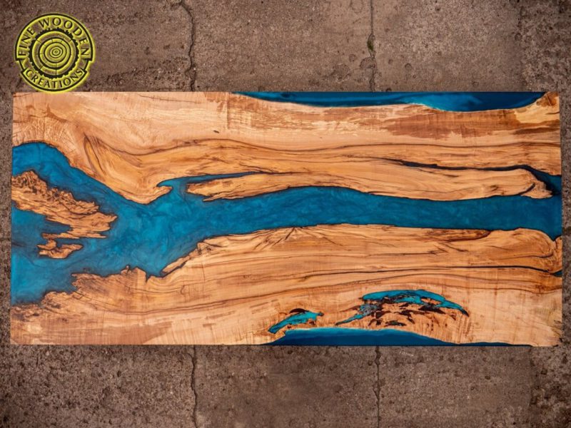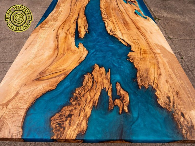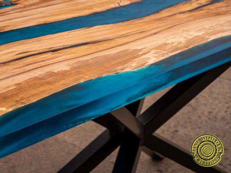 ...“Malediwy” unikalny stół z drewna klonowego i błękitnej żywicy