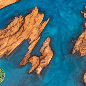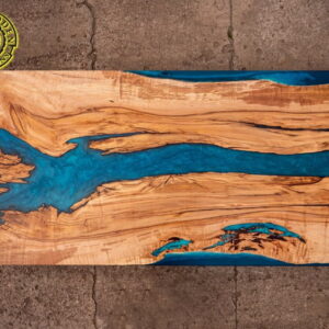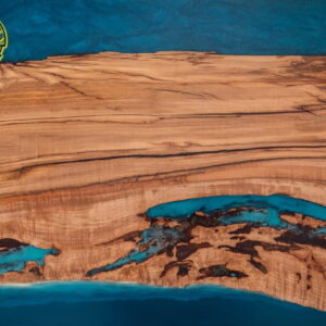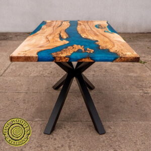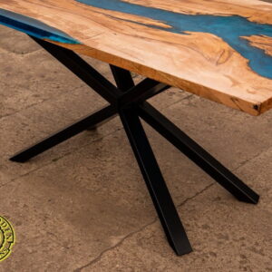 ...“Malediwy” unikalny stół z drewna klonowego i błękitnej żywicy