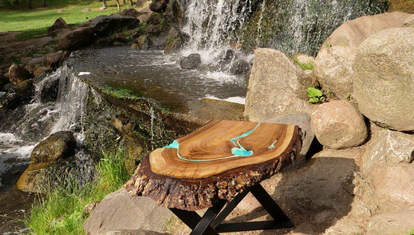 "Waterfall II" is a younger but bigger brother of "Waterfall" coffee table build in live edge style.
