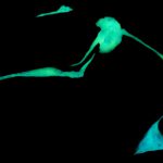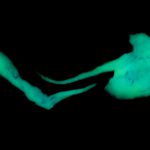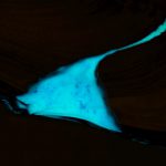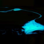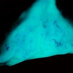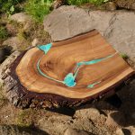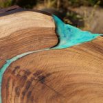Cracks, knots and holes are filled with glowing in the dark turquoise pigment