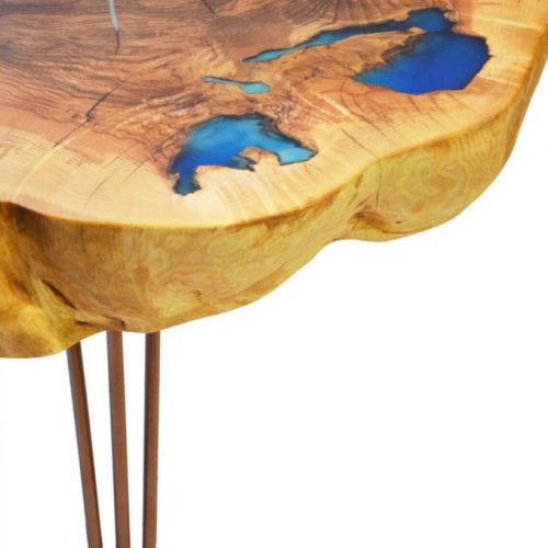 Resin river coffee table with with blue resin river – this is only coffee table top – no legs- You decide what legs it will stand on