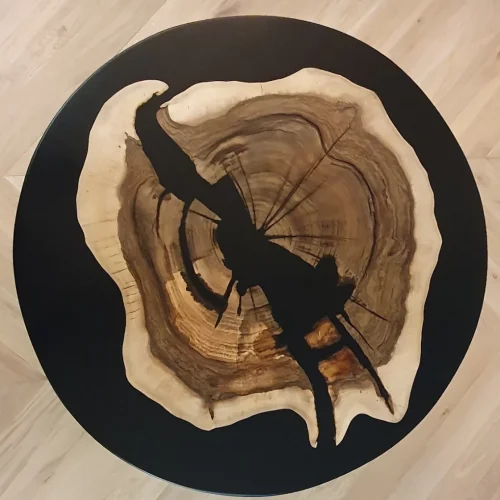 Amazing Round Coffee Table walnut wood with epoxy resin Black powder painted metal legs Style and Elegance for your interiors
