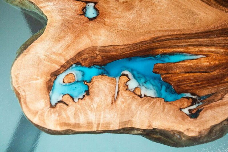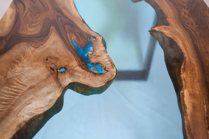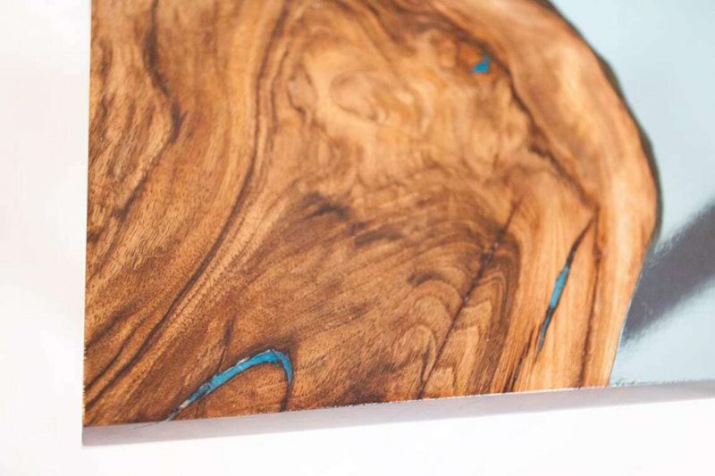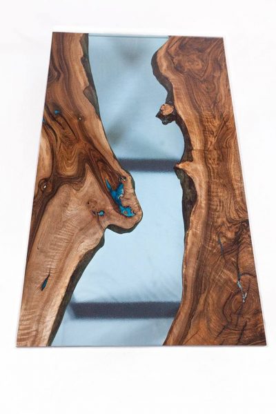 -Table top made of walnut; resin and wood are 4 cm thick,