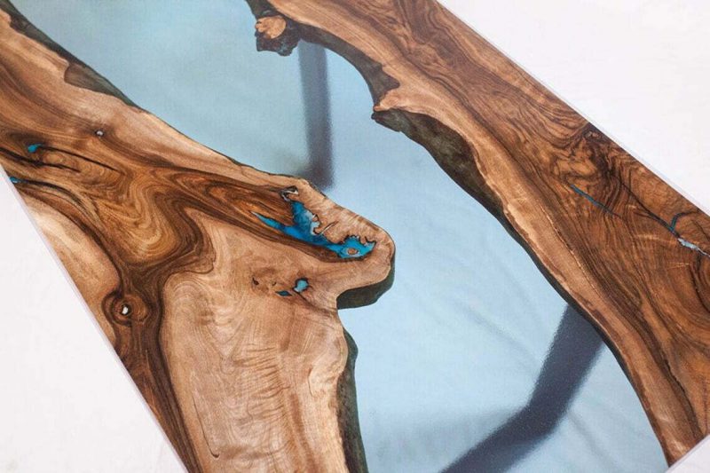 1 833.48 $Amazing Glass River Coffee Table with wooden legs. Glass ‘river’ flowing between wood pieces of walnut wood. “Wolin” – Poland’s famous national park with turquoise lake inside… which was inspiration to build this table.