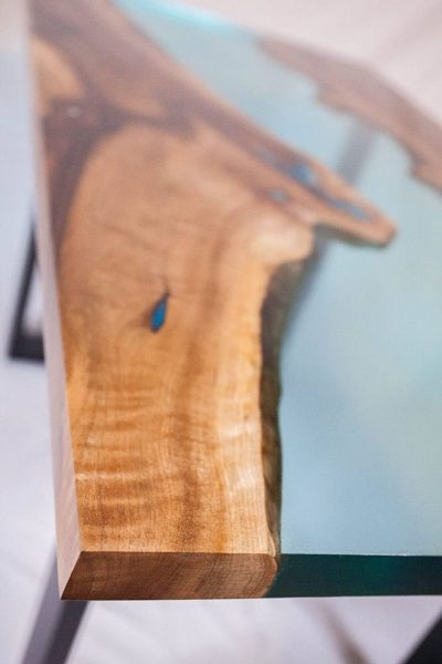 2 598.30 $“Bridge” – unique coffee table with glowing turquoise resin and heavy, solid metal legs base. It has a green glass ‘river’ flowing between ash wood pieces. It adds style and elegance to your interiors.