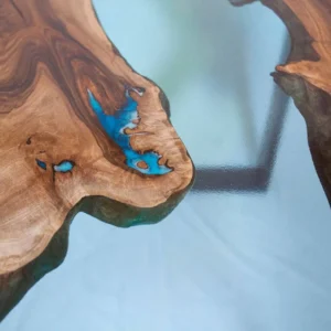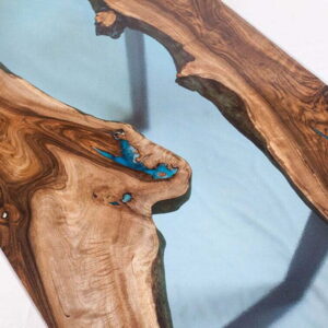 -Table top made of walnut; resin and wood are 4 cm thick,