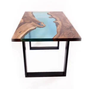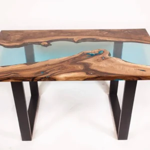 2 598.30 $“Bridge” – unique coffee table with glowing turquoise resin and heavy, solid metal legs base. It has a green glass ‘river’ flowing between ash wood pieces. It adds style and elegance to your interiors.