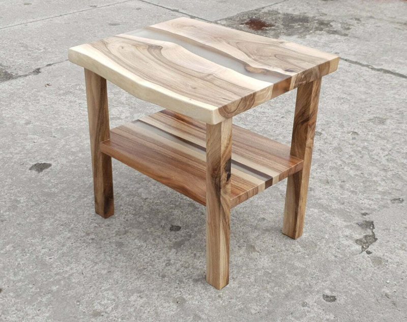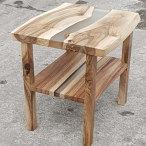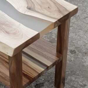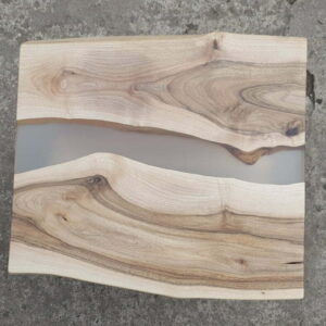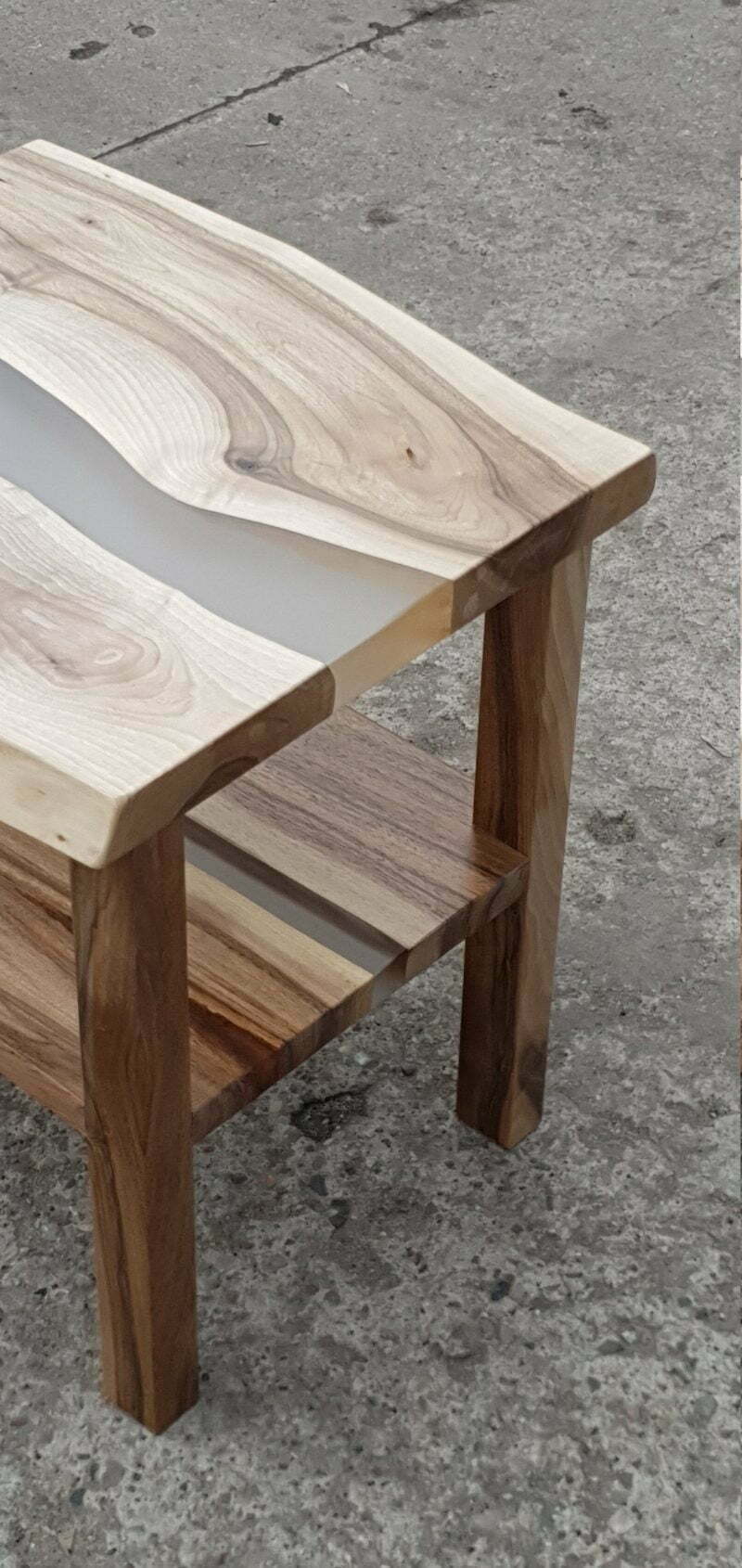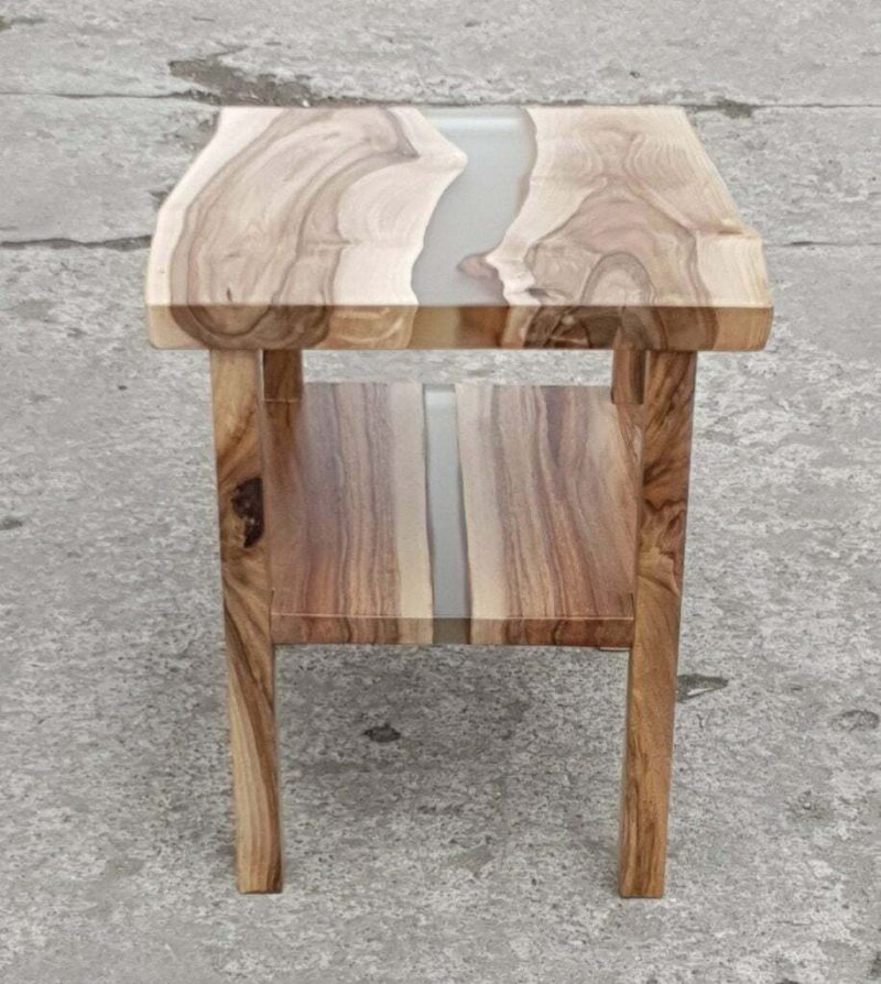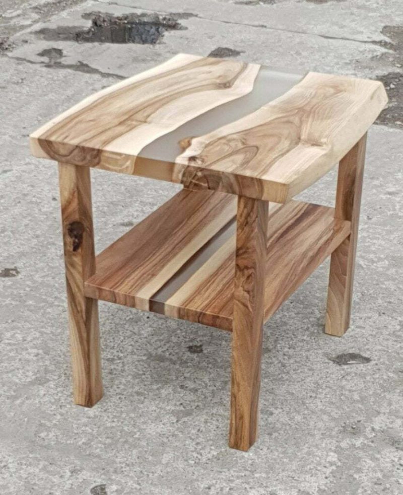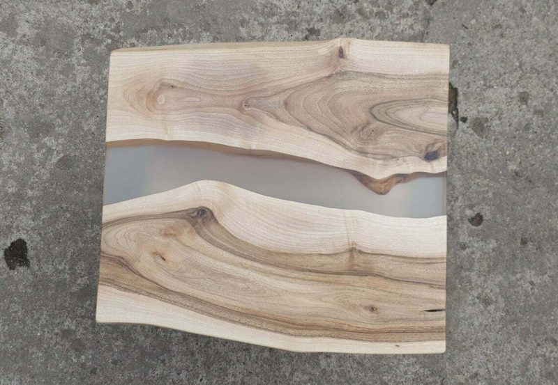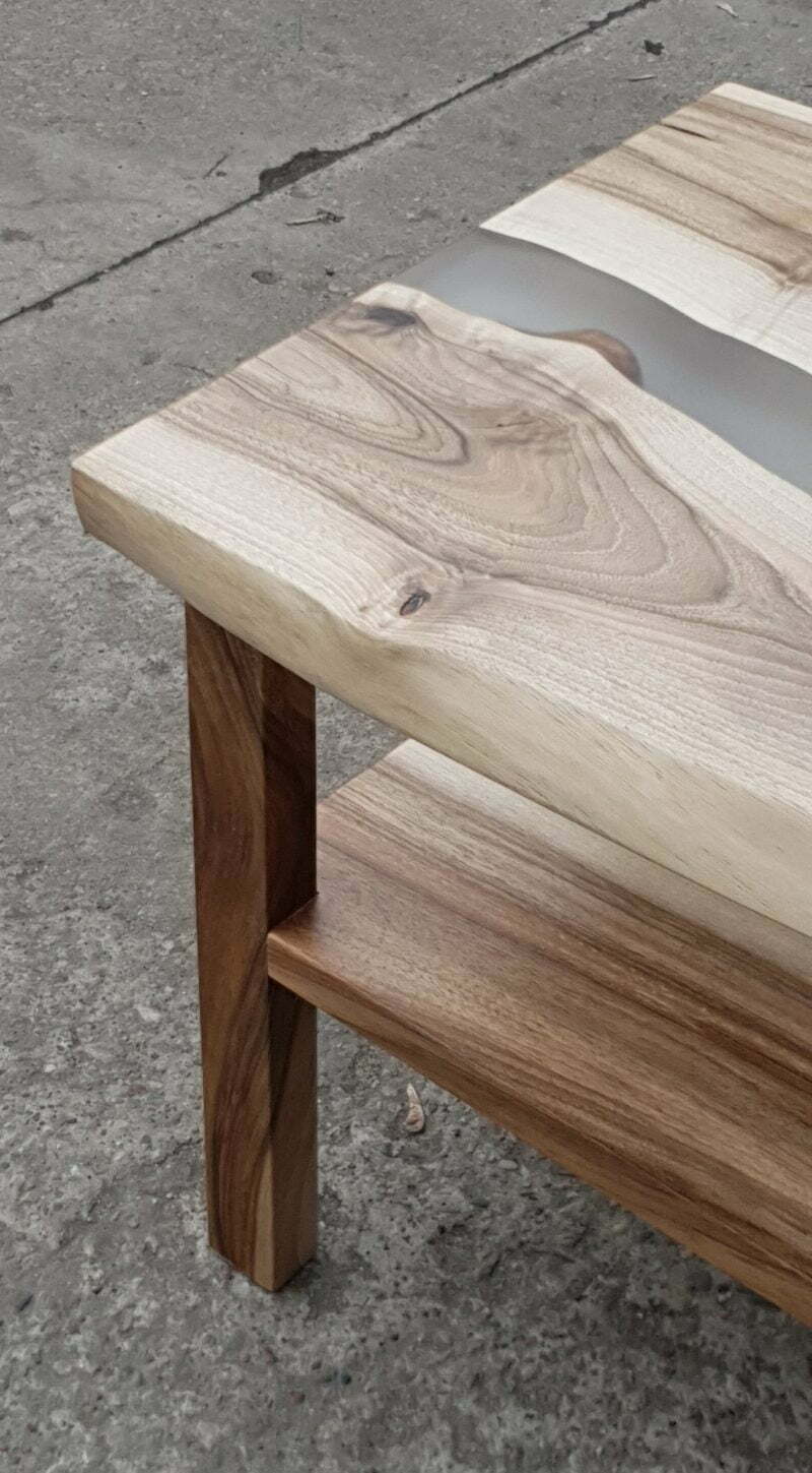 ...Square epoxy resin river coffee table with glowing resin fillin – bushed legs