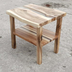 1 489.02 $Coffee table made of suar wood . Modern Live edge coffee table with glowing turquoise pigment and resin with wooden triangle legs. Table it is build with resin and turquoise glowing pigment.