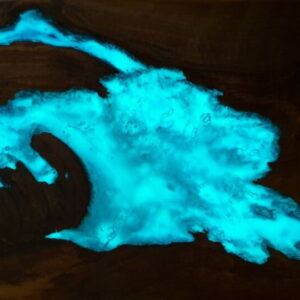 Turquoise glowing pigment shines for 10 hours after it gets some light – best few minutes of sunlight or strong bulb light.