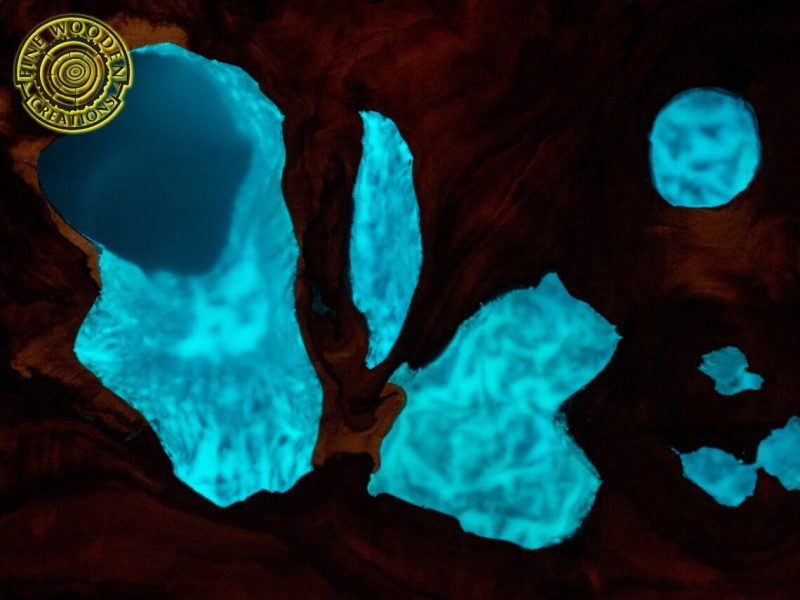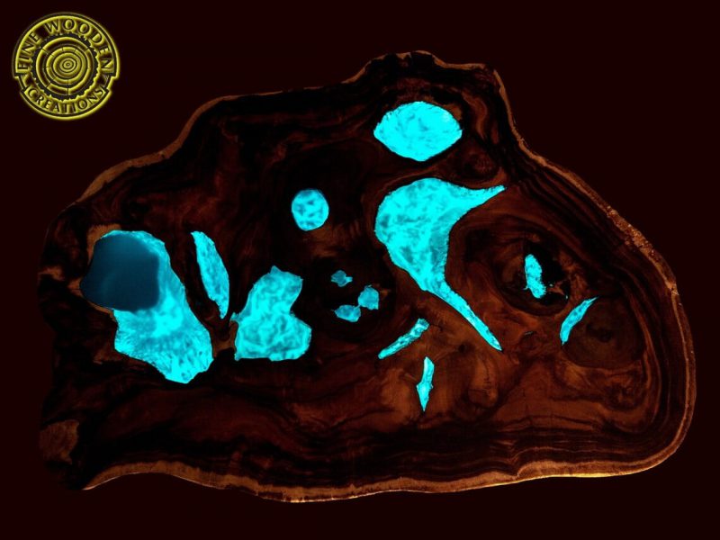 – Cracks, knots and holes are filled with glowing in the dark turquoise and green pigment