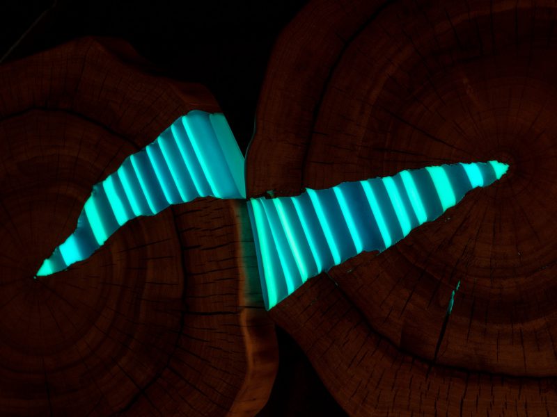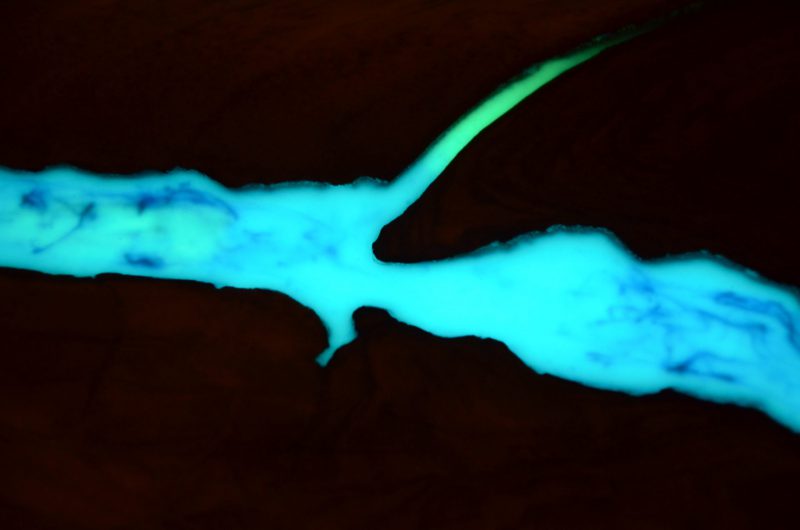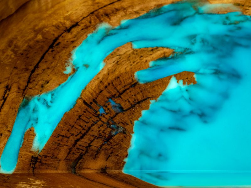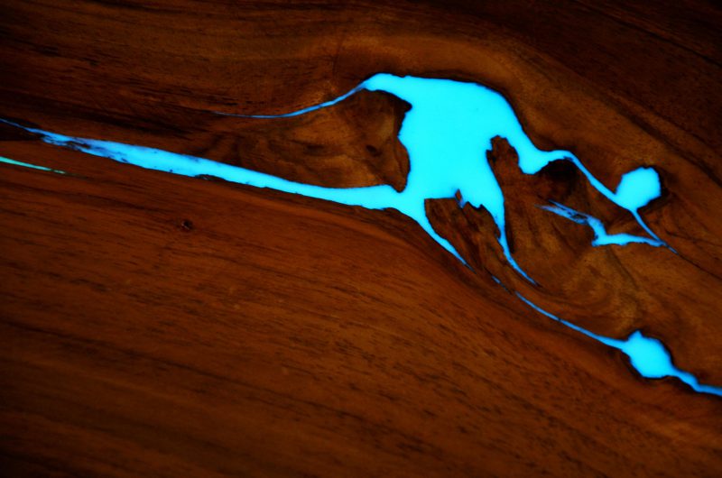 If we use the pigment to fill deep cracks, e.g. in resin table tops, we should try to place the pigment as close to the surface as possible to allow it to charge and glow easily. Pigment after curing with resin is a mass that can be well treated – sanded or rubbed.