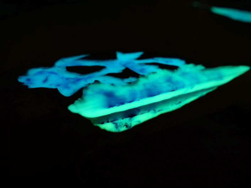 The base in which the pigment is processed should be transparent so as to allow the pigment to absorb light from the environment on the one hand and not to reduce its light emission on the other. We can additionally colour the carrier so that during the daytime the colour corresponds to the colour of glowing in the dark – but the colouring should be as small as possible in order to maintain the transparency of the carrier.