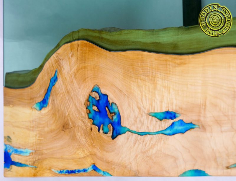Yellow-green luminescent pigment is one of the most frequently used in the production of our tables with resins for filling cavities, creating 3D effects or building luminous canyons.