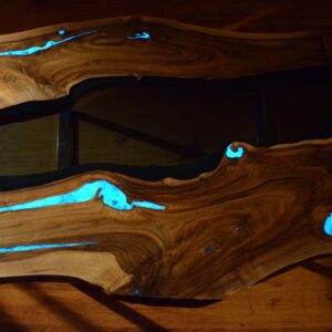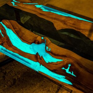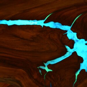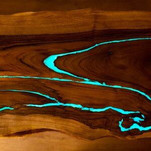 Yellow-green luminescent pigment is one of the most frequently used in the production of our tables with resins for filling cavities, creating 3D effects or building luminous canyons.