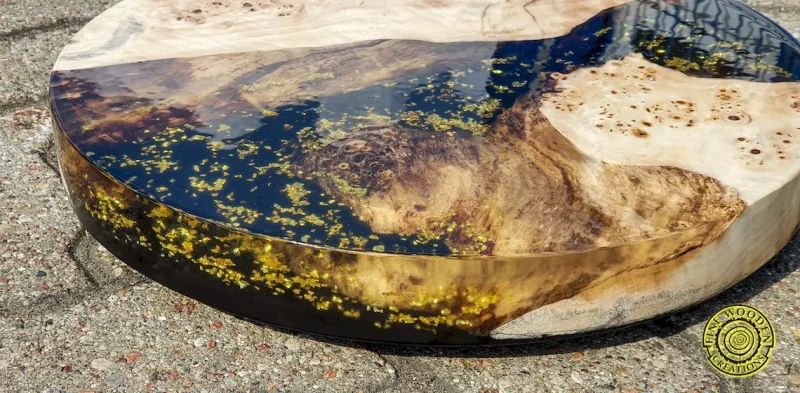 – the gold flakes are poured with crystal clear resin