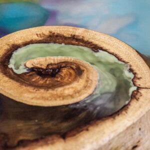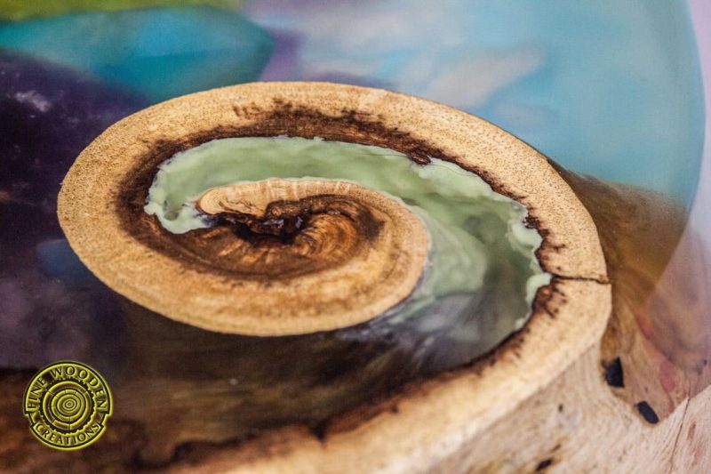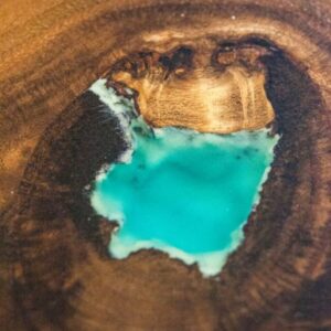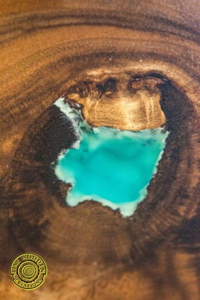 – Cracks, knots and holes are filled with glowing in the dark turquoise and green pigment