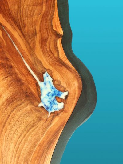 1 586.30 $Next version of modern Live Edge River Coffee Table with silver, shiny legs. This example was sourced and designed after natural Caribbean Blue Holes.