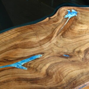 ...Coffee table made of exotic suar wood with glowing resin