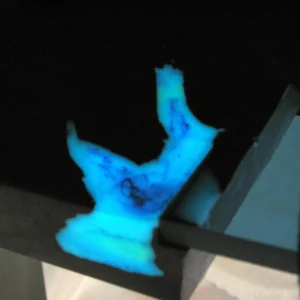 1 489.02 $Coffee table made of suar wood . Modern Live edge coffee table with glowing turquoise pigment and resin with wooden triangle legs. Table it is build with resin and turquoise glowing pigment.
