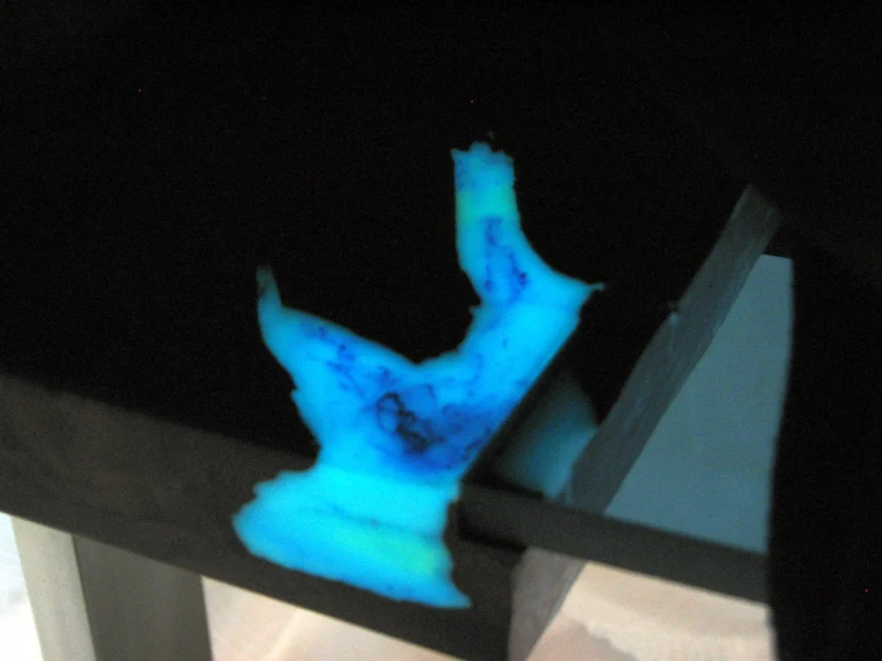 ...Green glass river coffee table with glowing resin fillin – silver legs