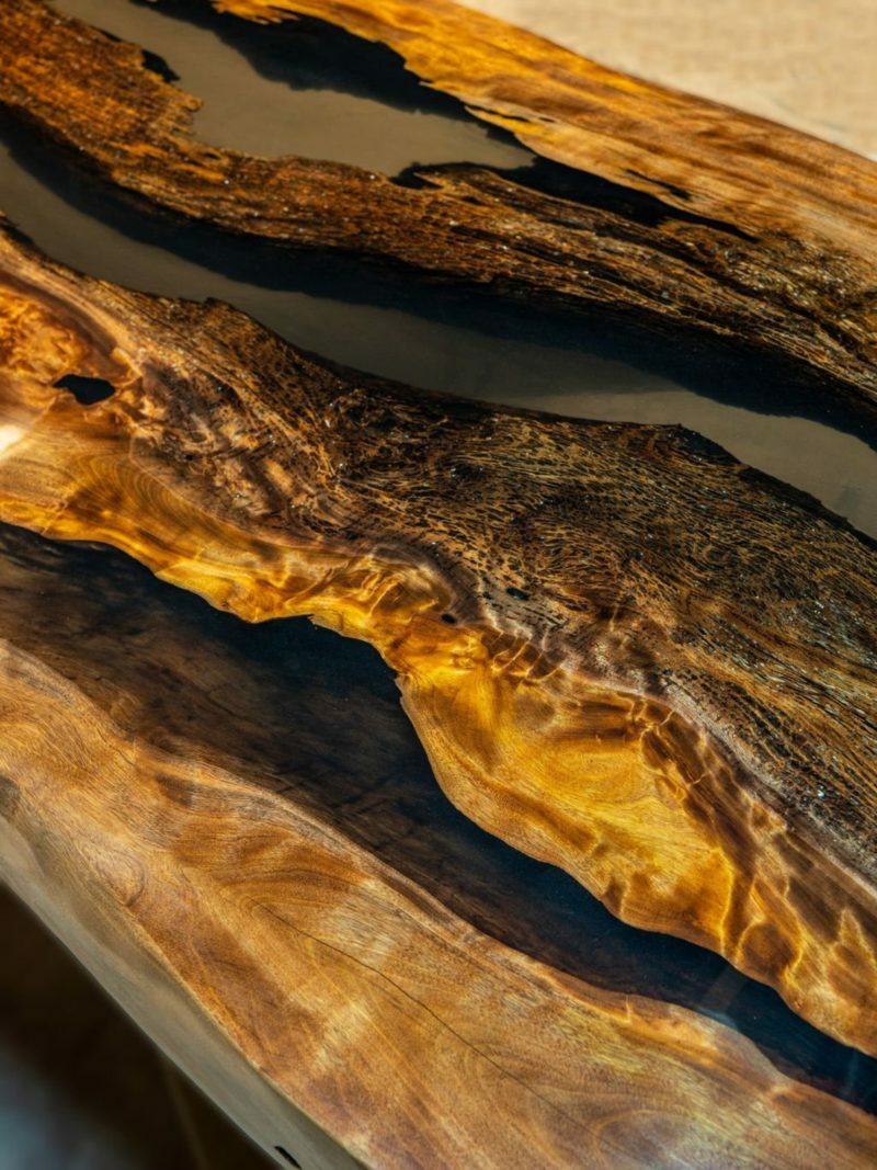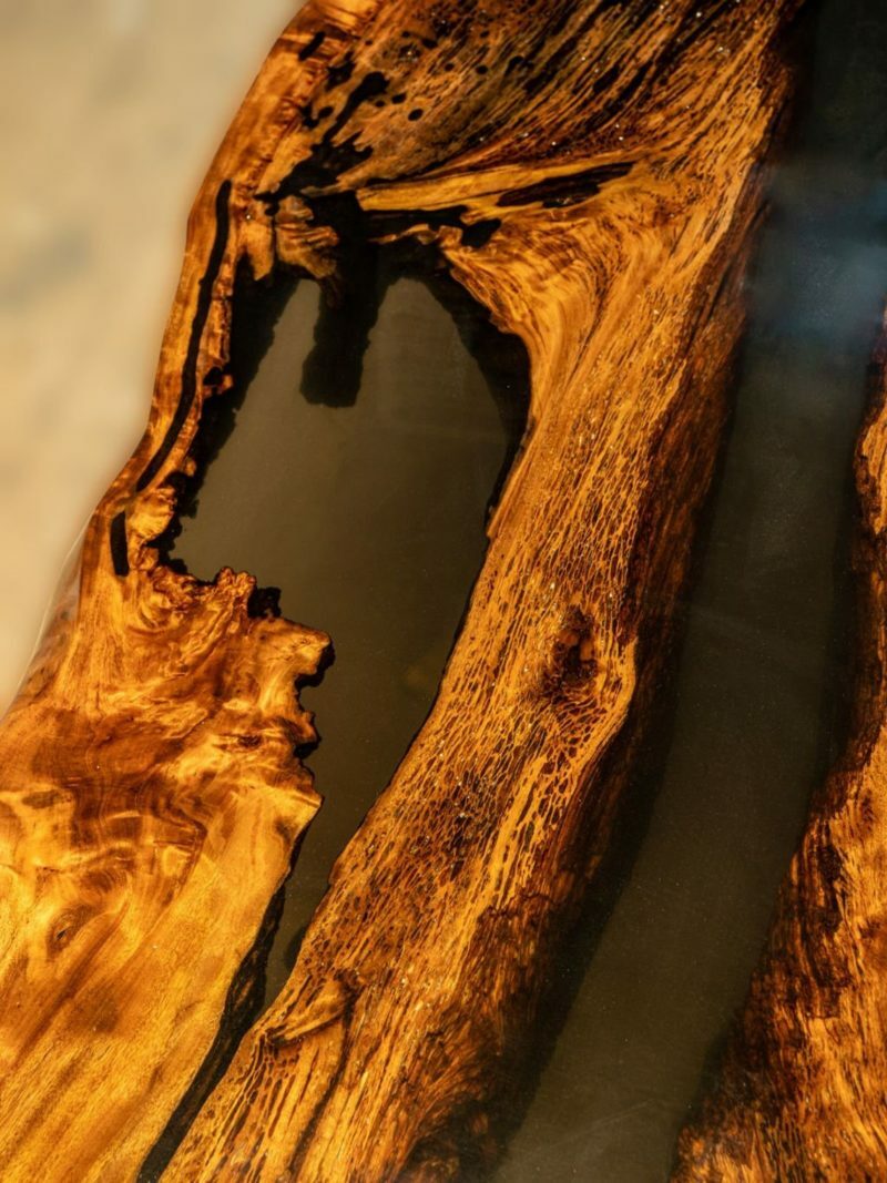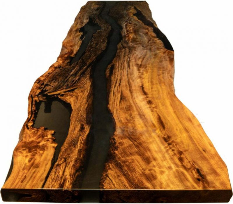 ...Live edge 3D effect river dining table with turquoise glowing resin, walnut wood